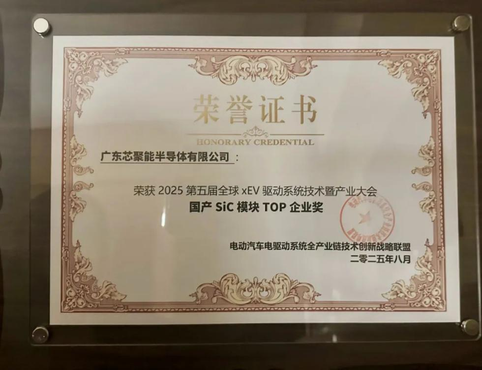 近日,芯聚能在“第五届中国优秀电驱动企业&优秀产品颁奖盛典”上荣获“国产SiC模块TOP企业奖”。芯聚能SiC模块契合新能源汽车主驱动对高功率密度与高可靠性的要求,性能指标达到行业领先水平,已获得多家知名车企的青睐与定点项目。公司自主研发和制造的SiC芯片也已成功应用于新能源汽车主驱,并获多个项目定点,即将实现大规模量产,将持续助推国产SiC芯片与模块市场渗透率的提升。
